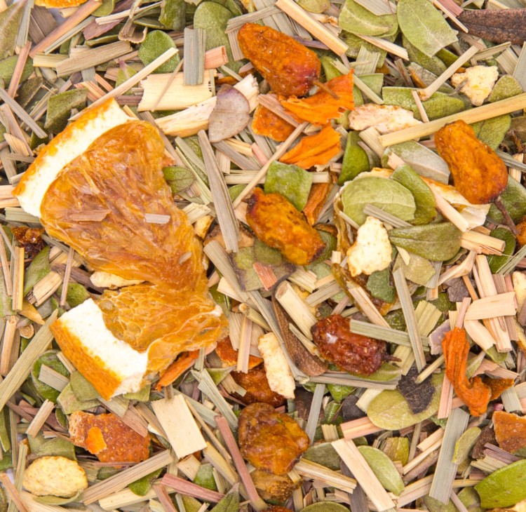 Лемонграсс, толокнянка лист, апельсин цедра, апельсин чипсы, ягоды облепихи, лилия лепестки