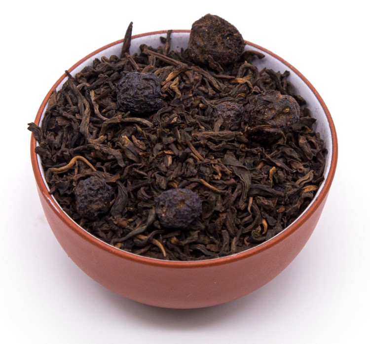 Китайский постферментированный пуэр ШУ 100%, ягоды черники, ароматическая добавка
